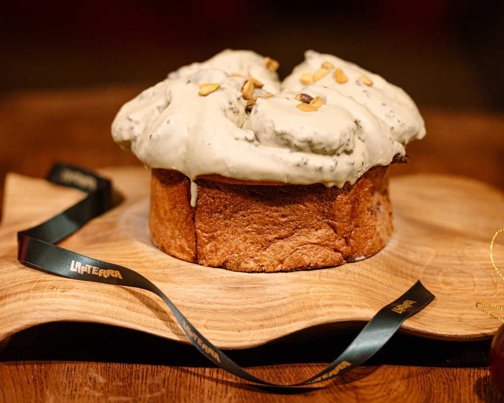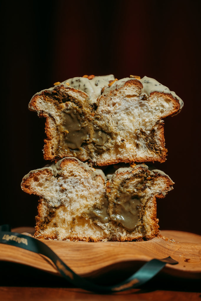 Cozonac Royal cu fistic (umplutură din fistic, cremă de fistic realizată în casă, glazură de fistic).